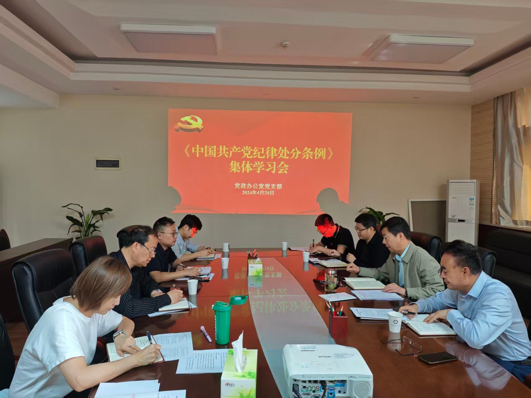 4月24日,党政办公室党支部在莲湖校区十楼会议室召开专题理论学习会议,组织全体党员干部集体学习新修订的《中国共产党纪律处分条例》(以下简称《条例》)。